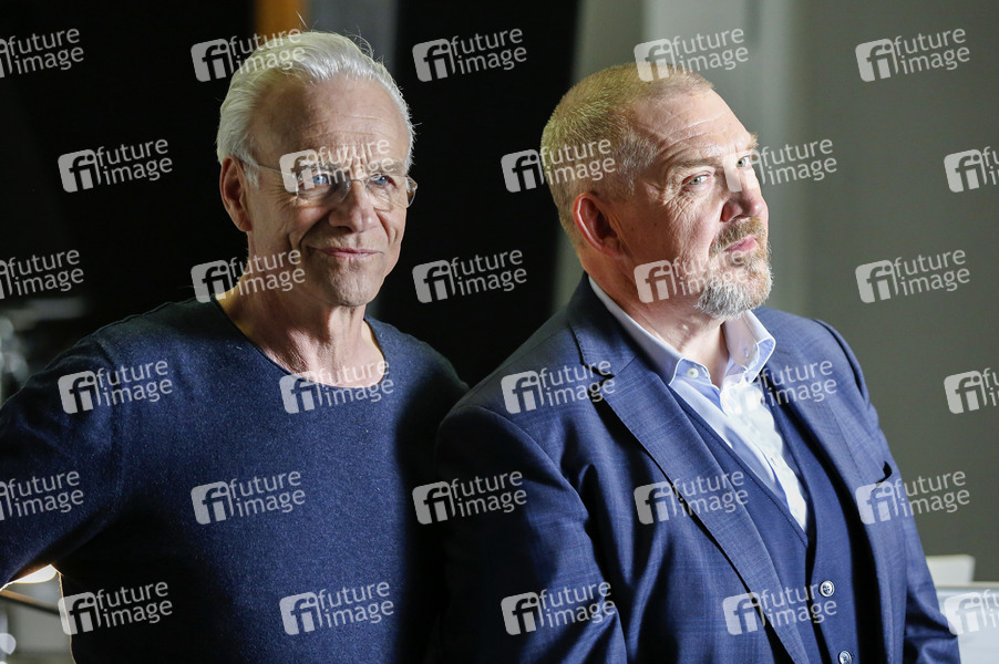 Klaus J. Behrendt und Dietmar Bär beim Fototermin bei den Dreharbeiten zum ARD-Krimi 'Tatort - Colonius' im Kommissariat-Set in der Max-Planck-Straße. Köln, 26.04.2024