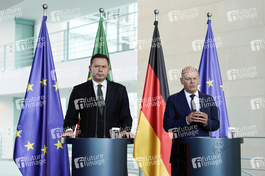 Politik, Politiker, Bundeskanzleramt, Staatsbesuch, Staatsvisite, bilaterale Gespräche, Treffen, Diplomatie, Kanzleramt, Ehrenhof, Staatsgast, Pressekonferenz, Pressestatement, PK, Bundeskanzler, SPD, Premierminister von Portugal, PSD