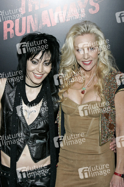 Joan Jett und Cherie Currie von The Runaways bei der Premiere des Kinofilms 'The Runaways' im ArcLight Cinemas Cinerama Dome. Los Angeles, 11.03.2010