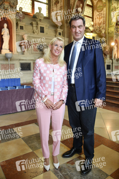 Markus Söder mit Ehefrau Karin bei der Verleihung des Bayerischen Verdienstordens 2019 im Antiquarium der Münchner Residenz. München, 22.07.2019