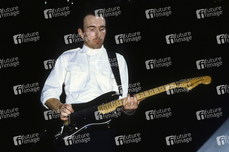 The Edge von U2 live bei einem Konzert der 'The Unforgettable Fire'-Tour in der Wembley Arena. London, 14.11.1984