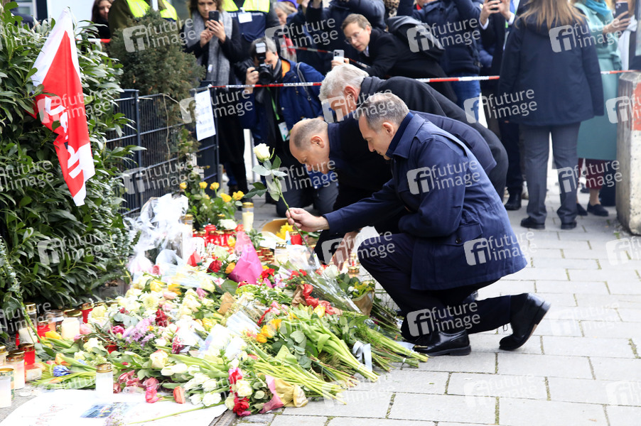 Olaf Scholz, Dieter Reiter und Volker Wissing beim stillen Gedenken am Ort des mutmaßlichen Anschlags vom 13. Februar. München, 15.02.2025