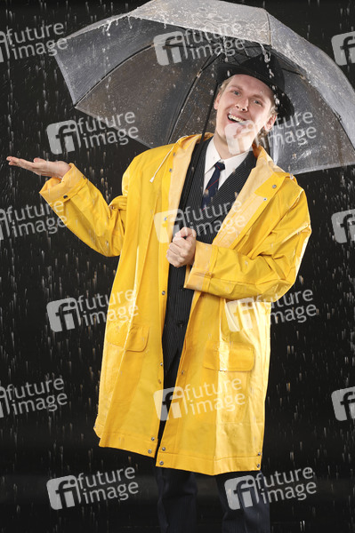 Fotoshooting, Unterhaltung, Entertainment, Kultur, Singin' in the Rain, Singing in the Rain, Musical, Regen, Wetter, Regenschauer, Nieselregen, Platzregen, Niederschlag, Gewitter, Wasser, Wetterprognose, Wettervorhersage, Regenschirn, Schirm, Regenjacke, Südwester, Regenkleidung, Regenwetter, Symbolbild, Symbolfoto