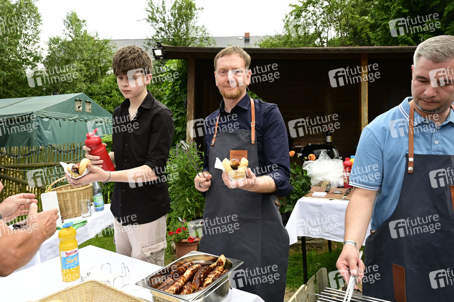 Michael Kretschmer bei der Veranstaltung der CDU 'Kretschmer grillt' im Berggasthof Jauernick. Markersdorf, 14.07.2025