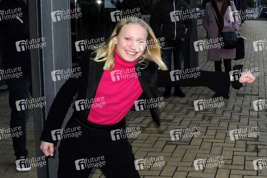 Helena Zengel bei der Ankunft zur Aufzeichnung der MDR-Talkshow 'Riverboat' im Studio 3 der Media City Leipzig. Leipzig, 05.03.2021