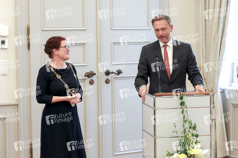 Katja Dörner und Christian Lindner beim Bildtermin vom Eintrag einiger G7-Finanzminister und Notenbankgouverneure ins Goldene Buch der Stadt Bonn im Alten Rathaus. Bonn, 19.05.2022