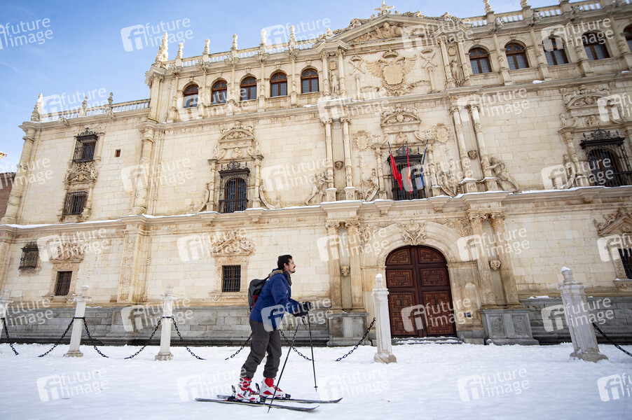 Universidad Cisneriana - Die Region Madrid nach dem Sturmtief Filomena, das in weiten Teilen Spaniens mit starken Schneefällen für Chaos sorgte. Starker Schneefall legte das öffentliche Leben nahezu lahm. Seit 50 Jahren hatte es nicht so geschneit. Alcalá de Henares, 10.01.2021