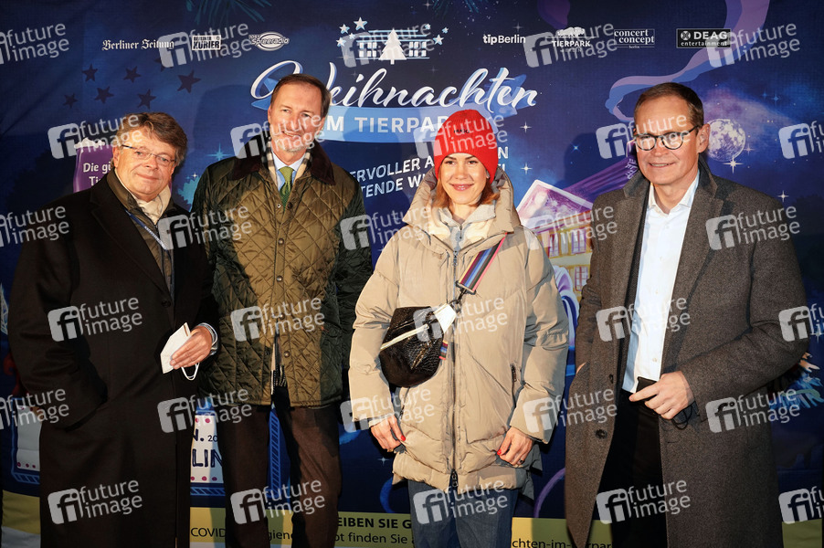 Peter Schwenkow, Andreas Knieriem, Wolke Hegenbarth und Michael Müller bei der Eröffnung von 'Weihnachten im Tierpark' am Schloss Friedrichsfelde im Tierpark Berlin. Berlin, 17.11.2021