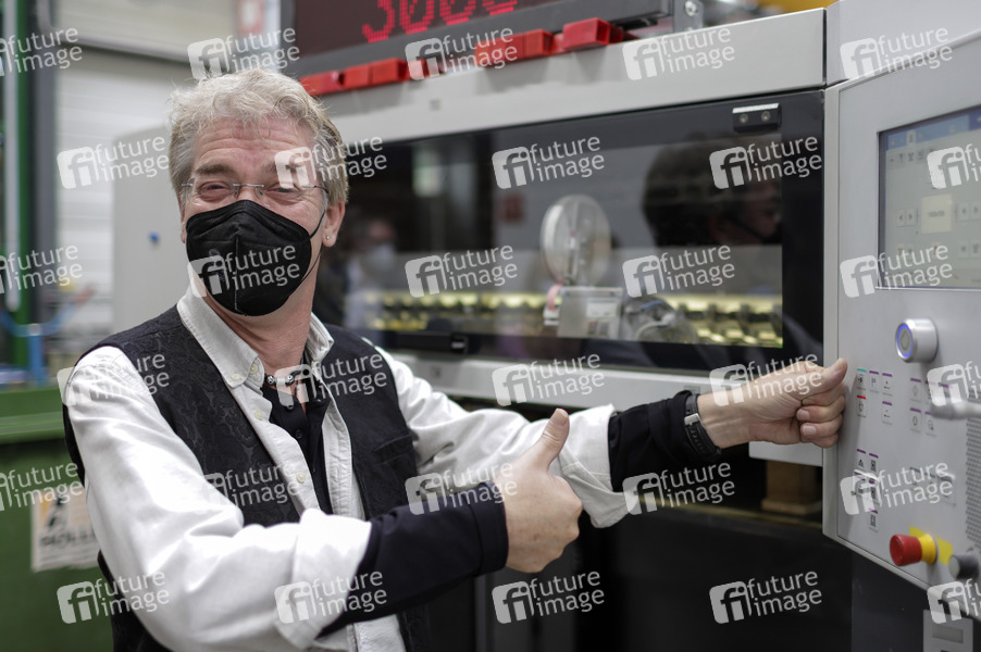 Jörg Düsterwald bei der Präsentation des Düsterwald-Kalenders 'Bodypainting in Nature 2022' in der Druckerei QUBUS media. Hannover, 30.07.2021