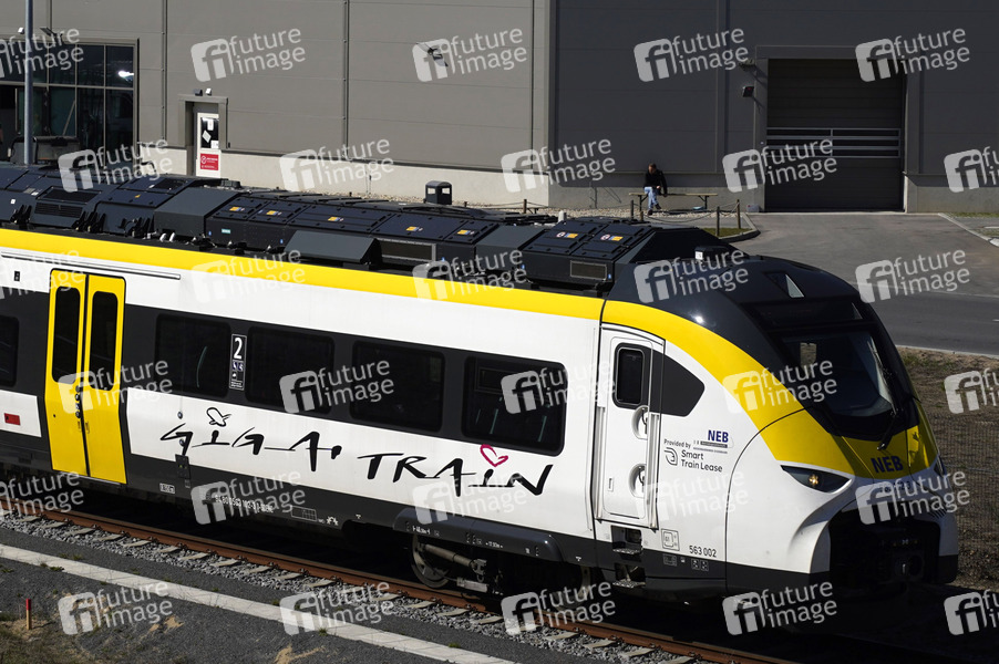 Die Tesla Gigafactory Berlin-Brandenburg ist eine Großfabrik von Tesla im Ortsteil Freienbrink der märkischen Gemeinde Grünheide. Sie befindet sich rund 30 Kilometer Luftlinie südöstlich vom Zentrum Berlins. Es handelt sich um eine der größten Elektroauto-Fabriken in Deutschland und die erste des US-Herstellers in Europa. Der erste vollelektrische, batteriebetriebene Zug Giga Train befördert Passagiere vom Bahnhof Erkner nach Tesla Süd, dem Bahnhof am Produktionsstandort des Unternehmens. Grünheide, 04.04.2025