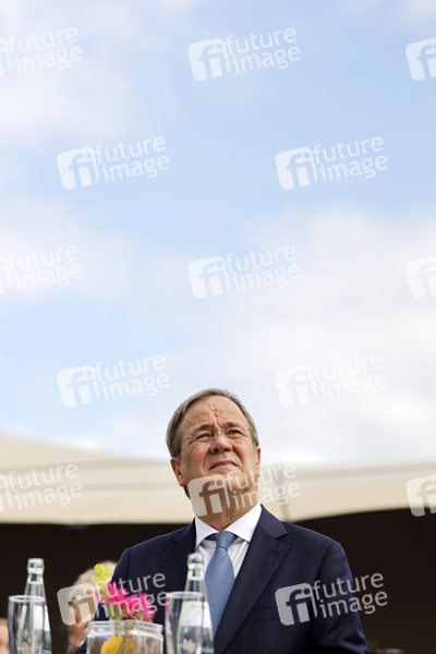 Armin Laschet bei der Inbetriebnahme das Pumpwerks Oberhausen und damit des gesamten Abwasserkanals Emscher. Bis Ende 2021 wird die Emscher sukzessive von ihrer Schmutzfracht befreit. Oberhausen, 20.08.2021