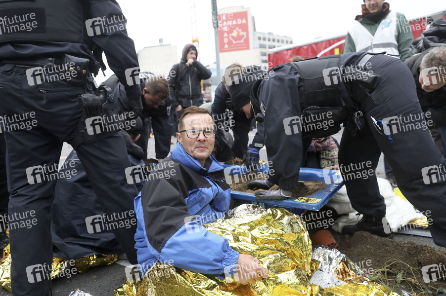 Aktivisten der Klimabewegung 'Extinction Rebellion' blockieren den Potsdamer Platz. Berlin, 08.10.2019