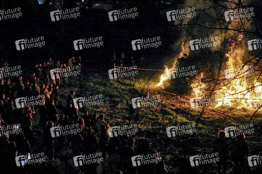 Ostern, Tradition, Feuer, Lagerfeuer, Weserbergland, Brauch, Feuerweihe, Ostersonntag, Osterbrauch, Holzstoß, Feuerwehr, Rauchentwicklung, Rauch, Qualm, Symbolbild, Themembild