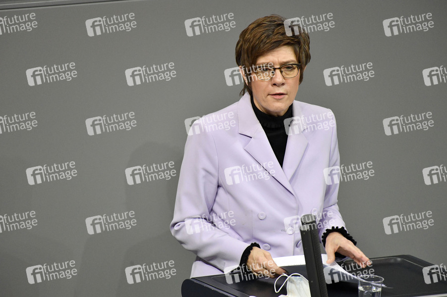 Annegret Kramp-Karrenbauer in der 215. Sitzung des Deutschen Bundestages im Reichstagsgebäude. Berlin, 04.03.2021