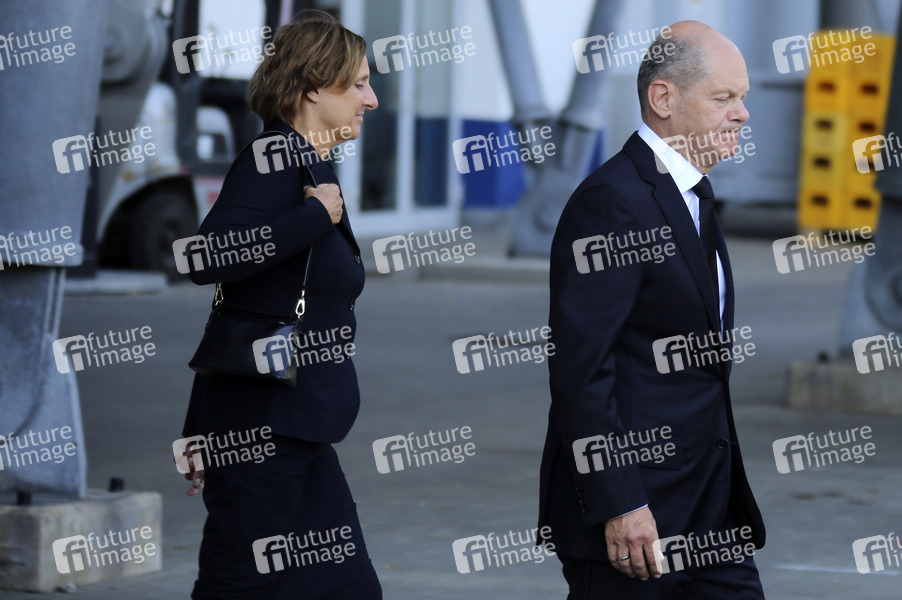 Olaf Scholz mit Ehefrau Britta Ernst bei der Trauerfeier für Uwe Seeler im Volksparkstadion. Hamburg, 10.08.2022