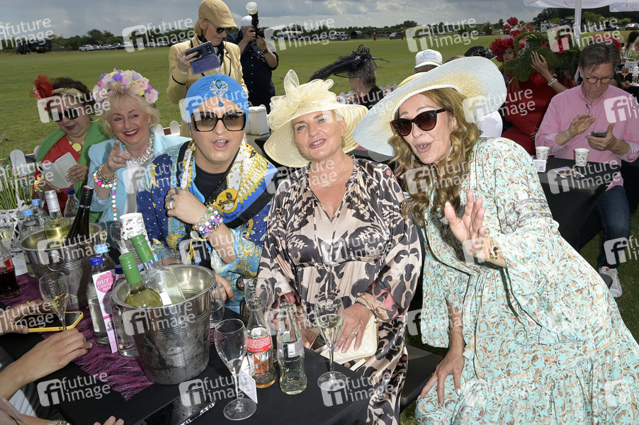 Franziska Traub, Stefanie Simon, Julian F.M. Stoeckel, Heike Weidling und Christiane Zander beim 4. Internationalen Ladies Cup und Hut Contest 2024 im Polo Park Seeburg/Berlin. Dallgow-Döberitz, 14.07.2024