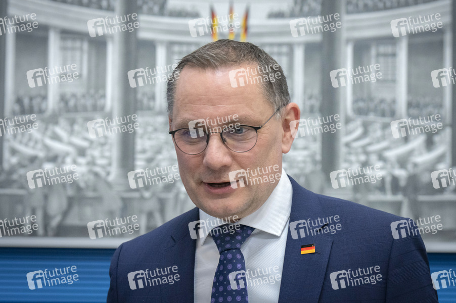 Tino Chrupalla beim Pressestatement zur Fraktionssitzung der AfD-Bundestagsfraktion im Reichstagsgebäude. Berlin, 10.02.2025