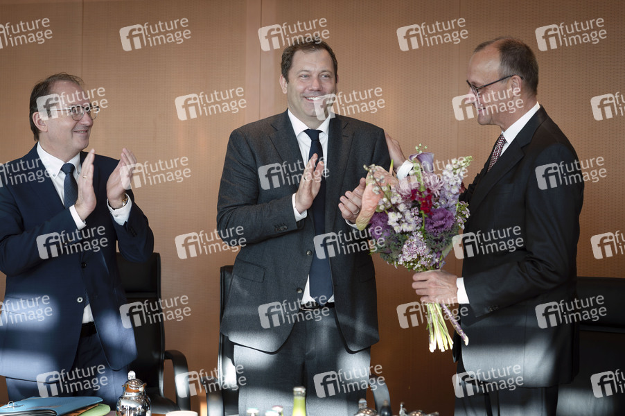Alexander Dobrindt, Lars Klingbeil und Friedrich Merz in der 23. Sitzung des Bundeskabinetts im Bundeskanzleramt. Berlin, 12.11.2025