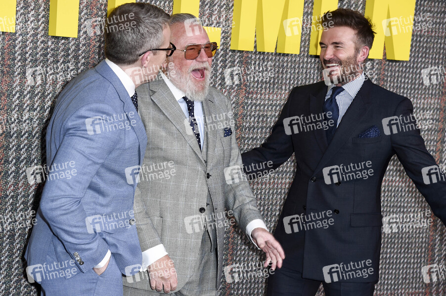 Max Beesley, Ray Winstone und David Beckham bei der Premiere der Netflix-Serie 'The Gentlemen' im Theatre Royal Drury Lane. London, 05.03.2024