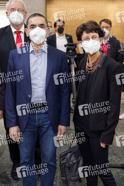 Ugur Sahin und Özlem Türeci, die Gründer des Biotechnologie-Unternehmens Biontech, bei der Verleihung der Ehrendoktorwürde der Medizinischen Fakultät der Uni Köln und der Eintragung ins Goldene Buch der Stadt Köln. Köln, 17.09.2021