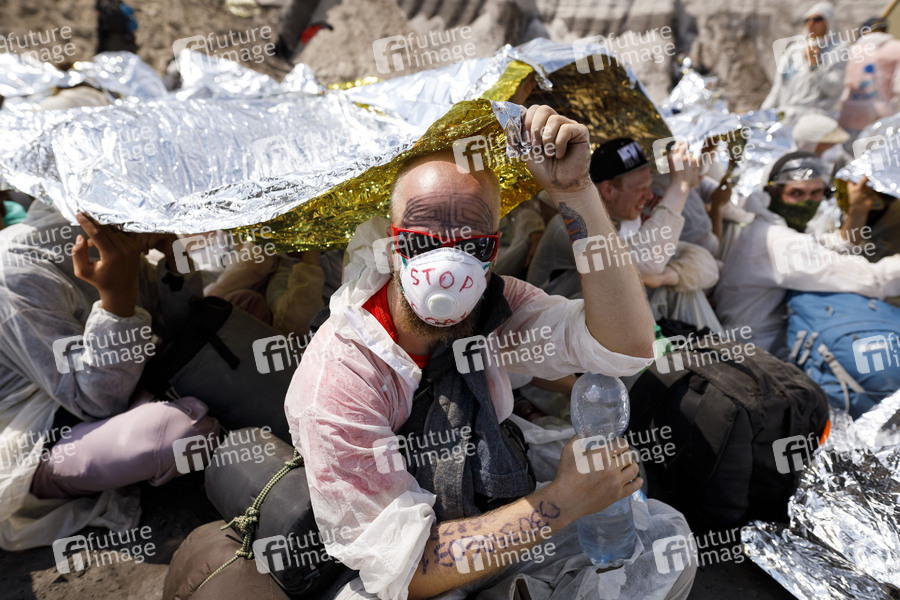 Erderwärmung, Klimagase, Kohlegegner, Klimaaktivisten, Klima-Notstand, Klimanotstand, Klimakrise, Klima-Krise, Energiewende, CO2, Treibhausgase, Klimaschutz, Schulstreiks für das Klima, Klima-Demonstration, Klima-Demo, Klimademo, Fridays for Future, Ende Gelände, Demonstration, Demonstranten, Demo, Kundgebung, Kohlekraft, RWE, Protest, Aktion, Banner, Parolen, Politik, Klimaschutz, Klimakrise, Klimawandel, CO2-Ausstoß, CO2-Steuer, Kohleausstieg, Fossile Brennstoffe, Klimapolitik, Hochneukirch, Keyenberg, Jüchen, Erkelenz, Grevenbroich, Tagebau, Garzweiler II, Braunkohlerevier, Climate Change, Jugendbewegung, Aktivismus, Climate Justice, Polizeikette, Polizei, Grubensturm, Demonstrationszug, Braunkohlegegner, Grubenrand, Aktivisten, Goldener Finger, Polizei, Polizeikräfte, Aktionsbündnis, Neurath, Kohle, Kohleversorgung, Braunkohle, Steinkohle, Symbolbild, Symbolfoto
