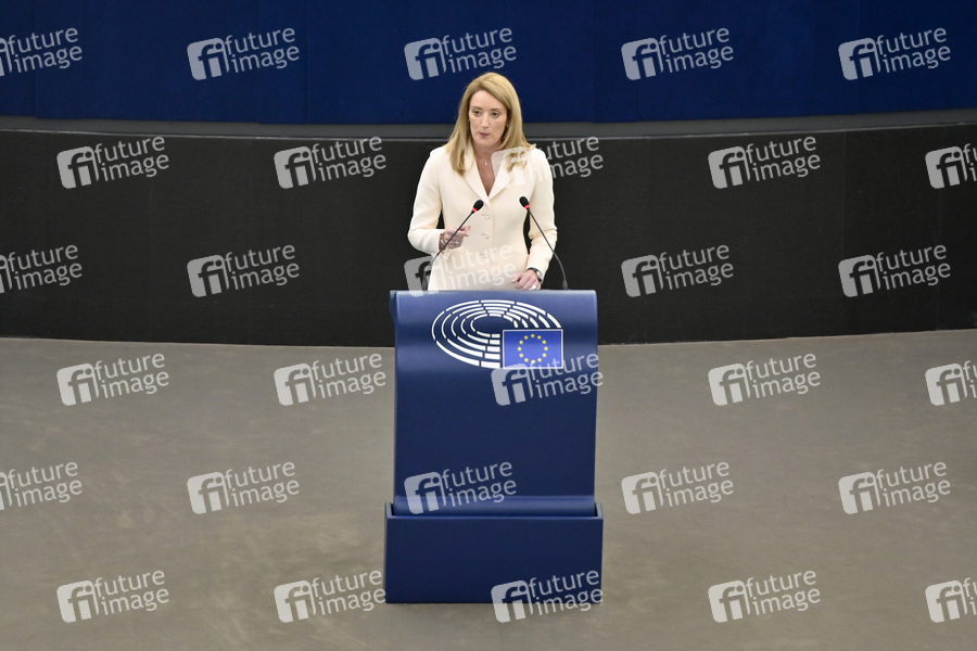 Roberta Metsola bei der Präsidentschaftskandidaten-Präsentation im Plenarsaal des Europäischen Parlaments. Straßburg, 18.01.2022