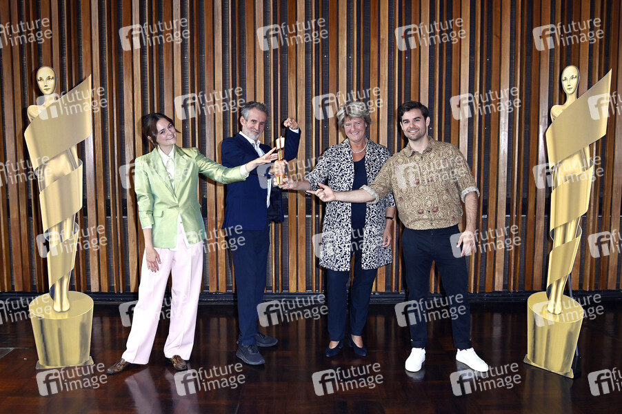 Lea van Acken, Ulrich Matthes, Monika Grütters und Lucas Reiber bei der Nominierungsbekanntgabe zum Deutschen Filmpreis 2021 im Kino International. Berlin, 19.08.2021