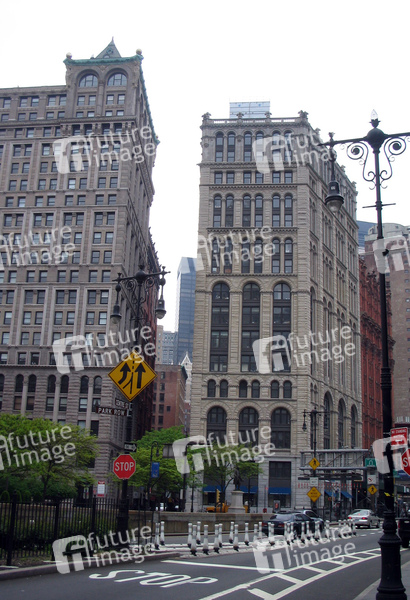 Downtown Manhattan am Fusse der Brooklyn Bridge