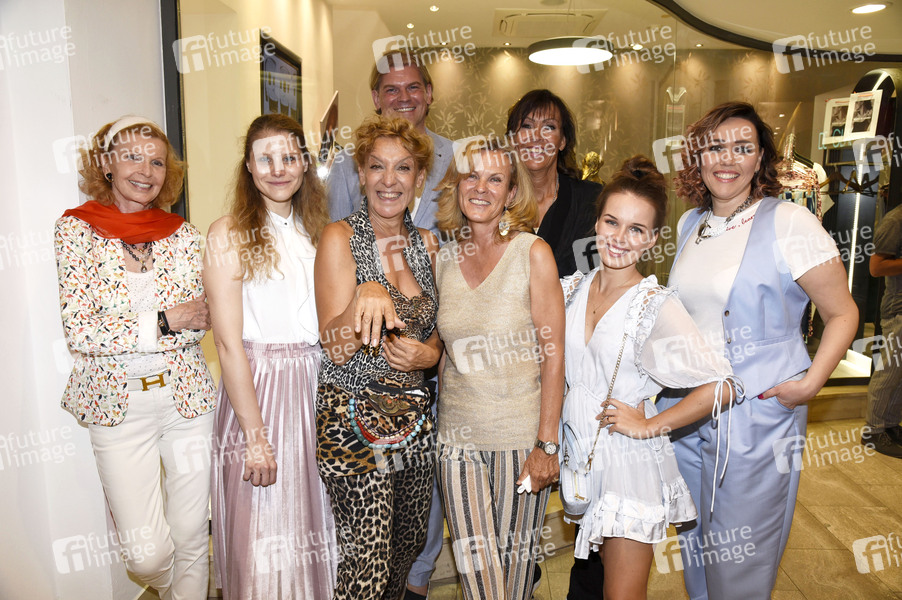 Jutta Kammann, Stephanie Lexer, Sissi Perlinger, Dirk Eichfeld-Kilian, Andrea L'Arronge, Julie Noll, Darya Gritsyuk und Jekaterina Krasnostanova bei der Beach Wear & Hair Modenschau in der Residenzpassage. München, 28.07.2020