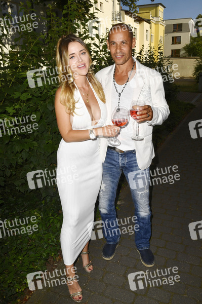 Cathy Lugner mit Jeff bei der Präsentation der Brautmodenkollektion Pompöös by Semiha Bähr im Ballhaus Pankow. Berlin, 28.06.2019