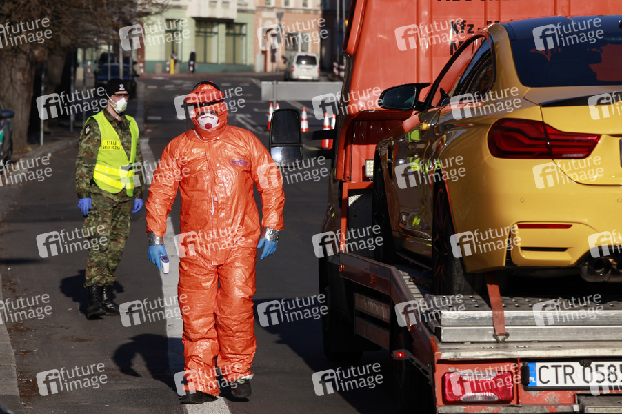 Grenzverkehr, Grenze, EU, Epidemie, Pandemie, Corona, Virus, Infektion, Lungenkrankheit, Schutzmaske, Mundschutz, Schutzanzug, Polen, SARS-CoV-2, Covid-19, Schutzmaßnahmen, Grenzübergang, Corona-Angst, Ansteckungsangst, Seuche, Corona-Test, Corona-Tests, Coronatest, Coronatests, anstecken, Corona-Krise, Vorbeugung, Prävention, schützen, Schutz, Papst-Johannes-Paul-II.-Brücke