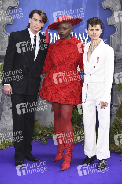Georgie Farmer, Joy Sunday und Oliver Watson bei der Premiere der Season 2, Part 1 der Netflix Serie 'Wednesday' in der Central Hall. London, 30.07.2025
