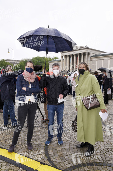 Veronika Stross, Bernd Sibler und Birgit Gibson bei der Demonstration 'Aufstehen für Kultur 2' auf dem Königsplatz. München, 13.05.2021
