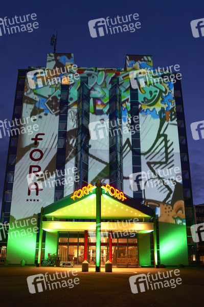 '3 Tage, 3 Wochen, 3 Künstler - Wir leuchten, um gesehen zu werden' - Graffiti-Kunst von Make Your Mark am Fora Hotel. Gemeinsam mit dem Unternehmen allstars event GmbH, die Aktionen wie 'Hannover leuchtet' und 'Night of Light' umsetzten, wurde dieses Projekt initiiert, um auf drei wichtige Branchen aufmerksam zu machen, die besonders unter den Corona-Maßnahmen leiden, die Hotelbranche, die Veranstaltungsbranche, sowie Kunst und Kultur. (Bildfreigabe des Fora Hotels, der allstars event GmbH und des Künstlers Make your Mark liegt vor) Hannover, 22.02.2021