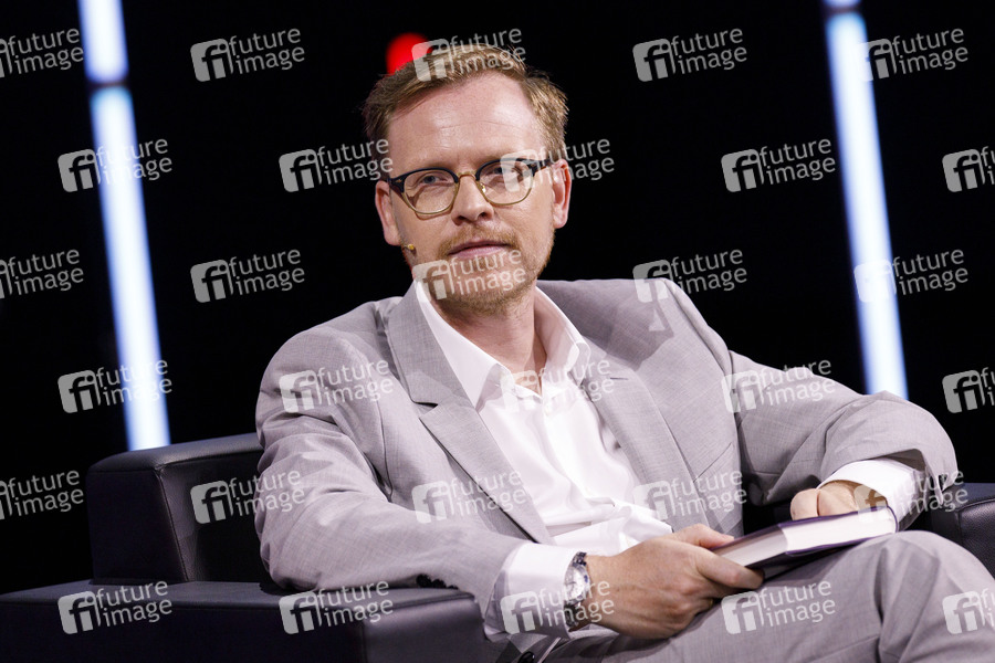 Markus Gabriel bei der lit.Cologne Veranstaltung 'Zwischen Gut und Böse - Markus Gabriel und Gert Scobel entwerfen eine Philosophie der radikalen Mitte' als Stream aus dem Theater am Tanzbrunnen. Die lit.Cologne 2021 findet wegen der Corona-Pandemie als digitales Event mit Streams statt. Köln, 04.06.2021