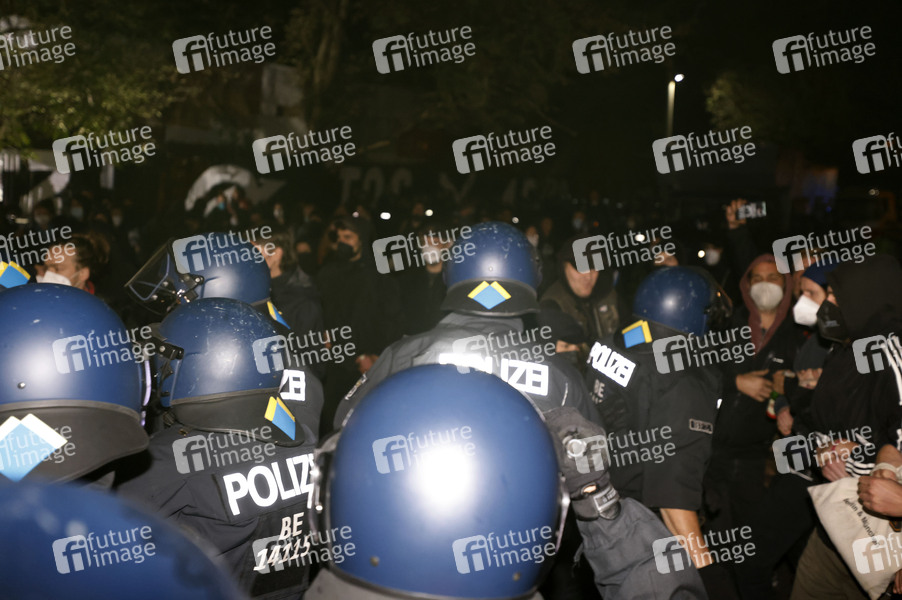 Demonstration gegen Räumung vom Wagencamp 'Köpi' von der Rigaer Straße zum Gelände des Camps an der Köpenicker Straße. Berlin, 09.10.2021