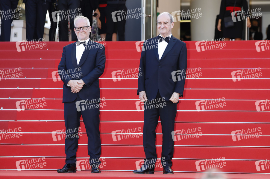 Thierry Fremaux und Pierre Lescure bei der Premiere des Kinofilms 'Aline / The Voice of Love' auf dem Festival de Cannes 2021 / 74. Internationale Filmfestspiele von Cannes im Palais des Festivals. Cannes, 13.07.2021