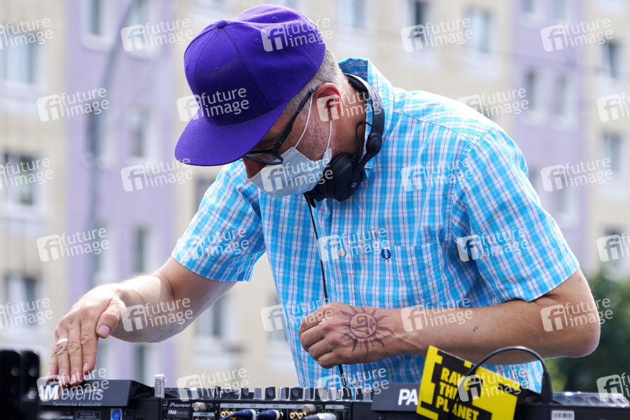 Dr. Motte (Gründer der Loveparade) und Vertreter der Veranstaltungbranche demonstrieren unter dem Motto 'Rettet die Veranstaltungsbranche' für eine Lockerung der Coronamaßnahmen, für finanzielle Unterstützung und die Unterstützung bei der Durchführung alternativer Veranstaltungskonzepte. Seit März sind die Musikklubs und Konzerthallen weitgehend geschlossen. Berlin, 14.08.2020