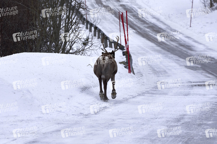 Sommarøy, Ren, Rentier, Renntier, Rangifer tarandus, Tier, Hirsch, Verkehrsgefährdung