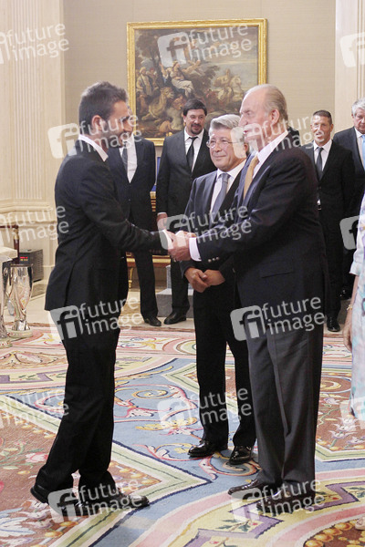 König Juan Carlos und Königin Sophia empfangen Spieler und Funktionäre von Atletio Madrid im Palacio de la Zarzuela, Madrid