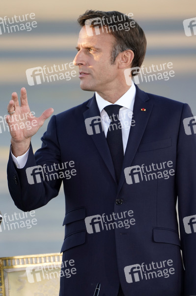 Emmanuel Macron bei der Ankunft zum G7-Gipfel am Flughafen München Franz Josef Strauß. München, 25.06.2022