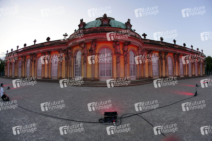 Beleuchtetes Schloss Sanssouci - Mit der bundesweiten Aktion 'Night of Light' macht die Veranstaltungsbranche auf ihre finanzielle Notlage durch die Corona-Krise aufmerksam. Potsdam, 22.06.2020