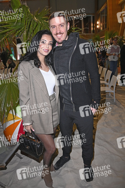 Max Kruse mit Ehefrau Dilara Kruse bei der Premiere des TV Realityformats 'Promis unter Palmen' im BeachMitte. Berlin, 10.02.2025