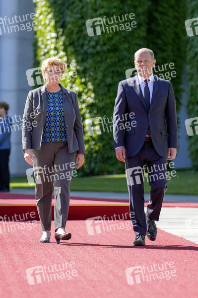 Viola Amherd und Olaf Scholz beim Empfang der Bundespräsidentin der Schweiz mit militärischen Ehren und zu einem gemeinsamen Gespräch mit anschließendem Pressestatement im Bundeskanzleramt. Berlin, 15.05.2024