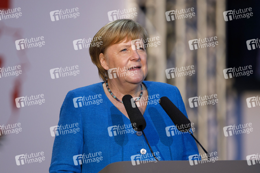 Angela Merkel beim Festakt zum 75. Geburtstag des Landes Nordrhein-Westfalen auf der Düsseldorfer Galopprennbahn. Düsseldorf, 23.08.2021