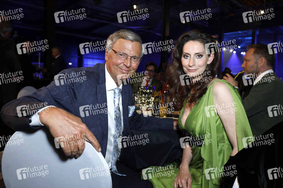 Wolfgang Bosbach und Pia Douwes bei der Verleihung der Goldenen Sonne 2019 während der Sonnenklar.TV Gala im Wunderland Kalkar. Kalkar, 27.04.2019
