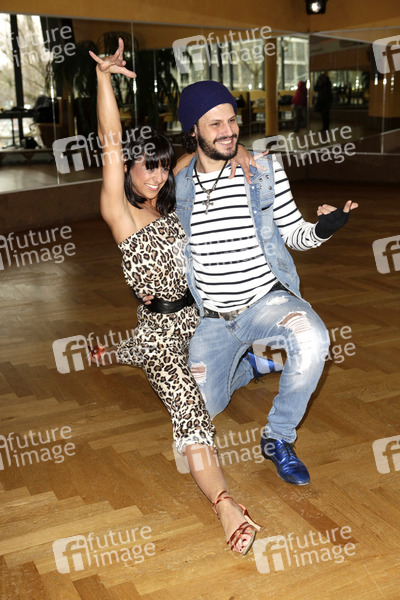 Manuel Cortez trainiert unter der Anleitung von Profitänzerin Melissa Ortiz-Gomez für die RTL-Tanzshow 'Let's Dance' in der Tanzschule Traumtänzer. Berlin, 18.03.2013