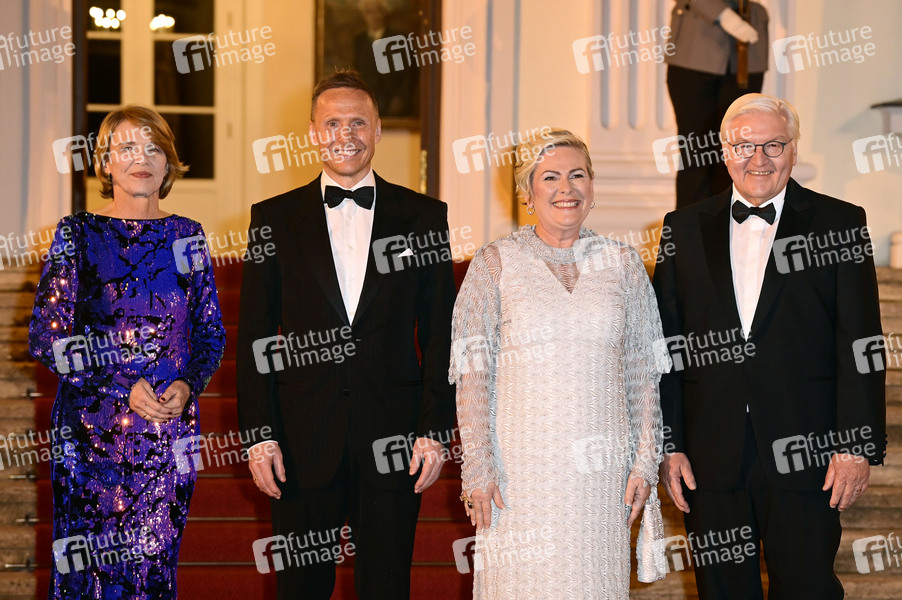 Elke Büdenbender, Björn Skulason, Halla Tomasdottir und Frank-Walter Steinmeier bei der Ankunft zum Abendessen anlässlich des 25. Jubiläums der Nordischen Botschaften im Schloss Bellevue. Berlin, 21.10.2024
