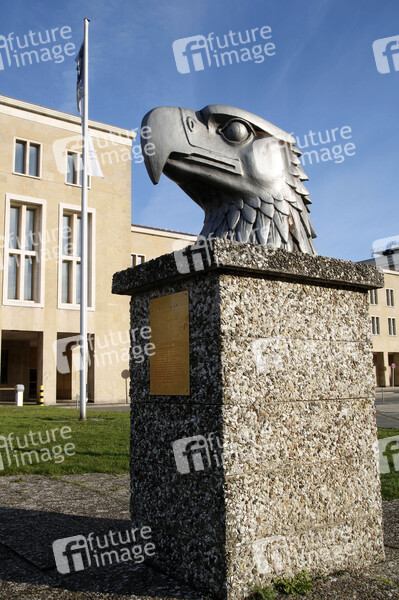 Schließung, Flugzeug, Flugzeuge, Airport, Stadtflughafen, Zentralflughafen, Luftverkehr, Luftbrücke, Symbolbild, Symbolfoto, Corona-Impfzentrum, Corona-Pandemie, Pandemie, Corona-Impfstation, Impfstation, Impfzentrum, Coronakrise, Eagle Square, Platz der Luftbrücke, Pladelu, Adlerkopfstatue, Vogelkopf, Adlerkopf