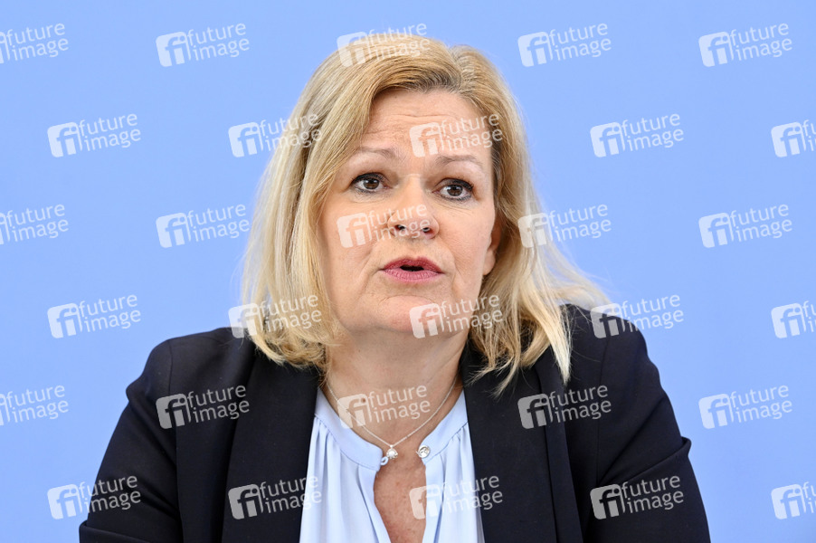Nancy Faeser bei der Bundespressekonferenz zu den Fallzahlen für die Politisch Motivierte Kriminalität (PMK) 2023 im Haus der Bundespressekonferenz. Berlin, 21.05.2024